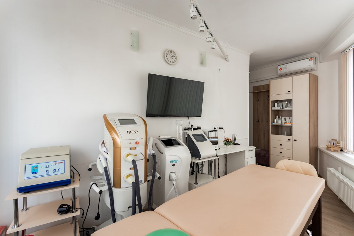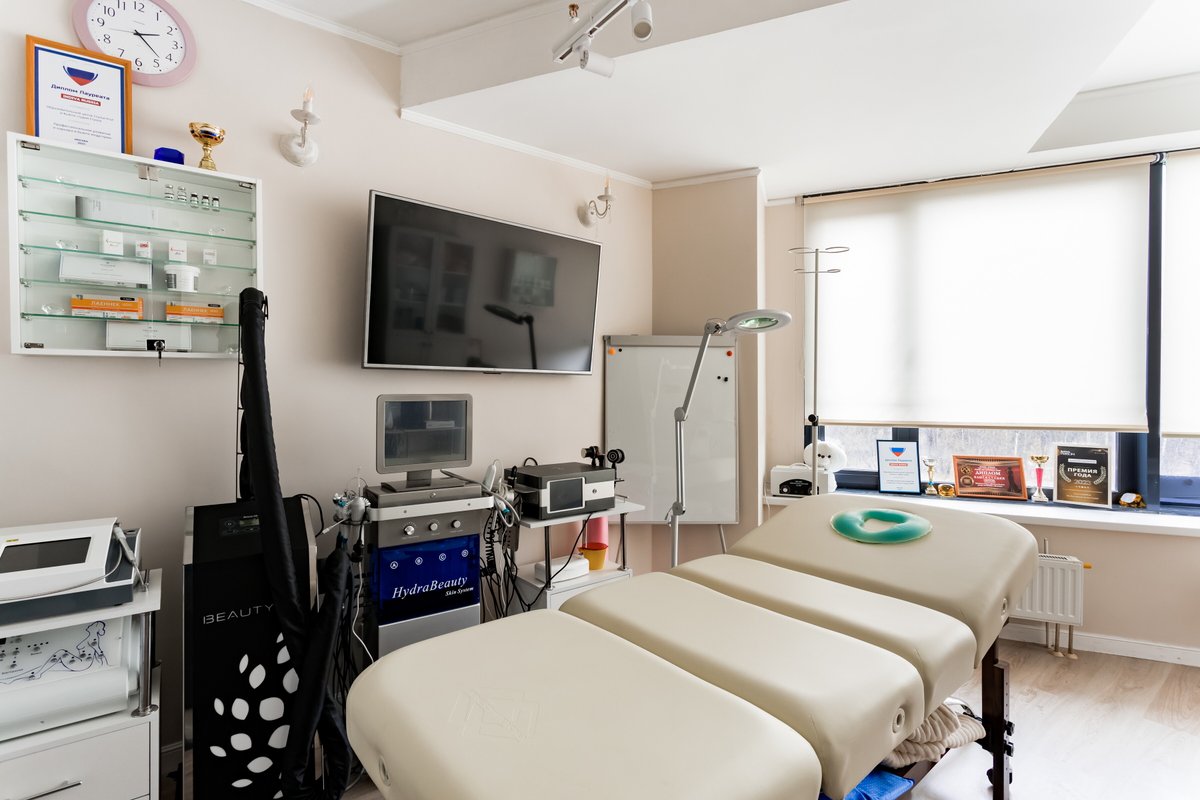 Также к услугам наших посетителей антицеллюлитный массаж, массаж головы и лица, фотоэпиляция, пирсинг, косметология, в том числе аппаратная, пилинг, обертывания, миостимуляция, вакуумный массаж, контурная пластика, биоревитализация, мезотерапия, инъекции ботокса, гиалуроновая кислота, архитектура бровей, окрашивание ресниц, татуаж. Принимает специалист по мезотерапии кожи головы.